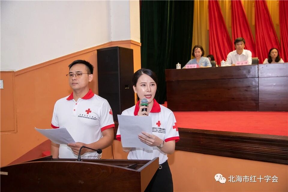 红十字志愿者宣读《国际红十字与红新月运动基本原则》
