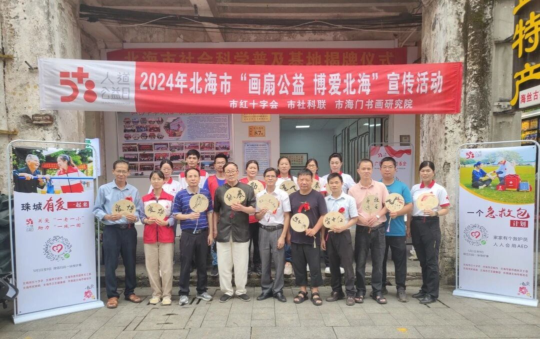 北海市红十字会注重红十字文化传播,借助公益日活动,通过线上线下相结合的方式开展公益传播,开通微信视频号和网络直播,以更加直接的方式呈现公益宣传内容,精心制作“急救包里有什么”“一元也能做公益”“我有一个帽衫”等公益宣传片在主流媒体播放;同时设计切合主题的宣传海报与文稿,在广西日报、北海日报等多个媒体平台发布;线下选择五一假期、世界红十字日等重要时间节点,在银滩、北海老街等知名景点,举办“人道公益集市”“公益画扇 博爱北海”“红十字救援队开放日”等主题活动,利用北海丰富的旅游资源为公益宣传增色添彩。