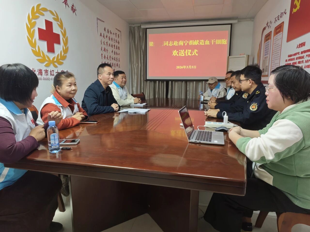 3月上旬,北海市红十字会为小梁举行了简短而隆重的欢送仪式。市红十字会党组书记、常务副会长吴智祥出席欢送会,为即将奔赴采集医院的小梁加油鼓劲,称赞他的善举是践行“人道、博爱、奉献”红十字精神的具体体现,并叮嘱他安心捐献,不必有后顾之忧。