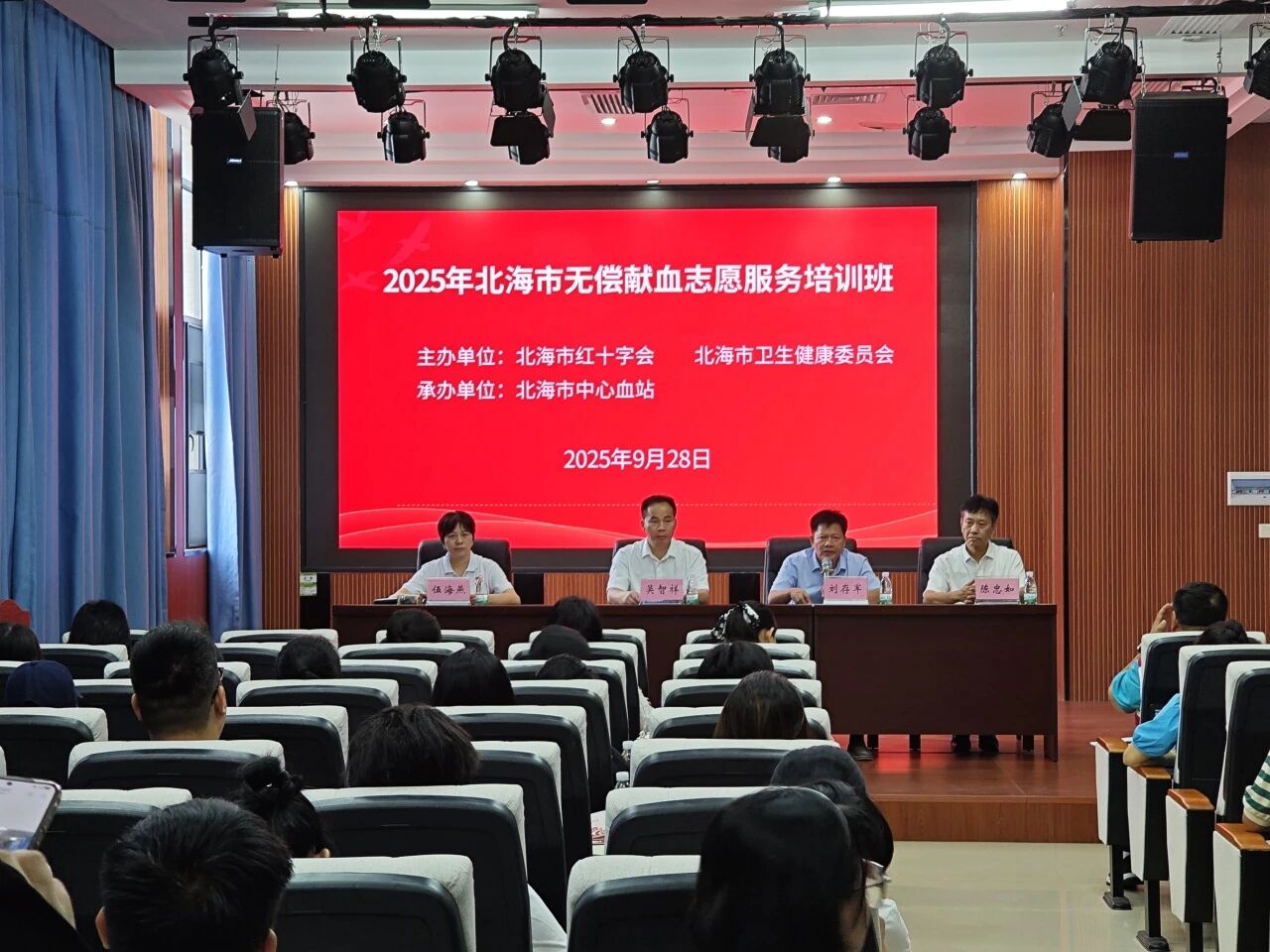 为进一步提升我市无偿献血志愿服务的专业化、规范化水平,增强志愿者们的服务技能和综合素养。9月28日上午,由北海市红十字会、市卫生健康委员会主办的2025年北海市无偿献血志愿服务培训班在市中心血站顺利举办。市红十字会党组书记吴智祥、市卫生健康委员会党组成员、副主任刘存军出席并致辞,来自各医疗卫生单位的50余名医务志愿者参加了培训。