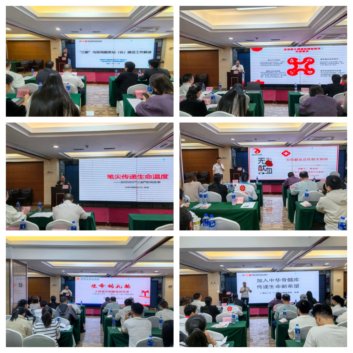 本次培训课程设置系统全面、内容务实管用,紧密围绕“三献”工作的核心任务,涵盖了六大重点模块:冯晓春副主任系统介绍了“三献”工作,深入解读了咨询服务站(台)的标准化建设要求与管理规范,为基层站点建设提供了清晰“路线图”。广西熙棣律师事务所吴恒彩律师专题讲解了“三献”工作中的法律风险识别与防控措施,切实增强了参训人员的法律意识和履职保障能力。市融媒体中心编辑、市红十字会监事会监事韩倩以 《笔尖传递生命温度——如何讲好“三献”故事》 为题,分享了选好故事的三把“金钥匙”和让故事“活”起来的四大技巧,提升了志愿宣传的感染力与号召力。市中心血站站长陈忠如、广西红十字“三献”志愿宣讲团讲师伍燕、罗健平,分别就无偿献血、造血干细胞捐献、人体器官捐献的专业知识及《人体器官捐献和移植条例》进行了权威、细致的解读。