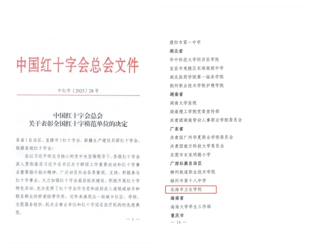 喜报!北海市卫生学校荣获“全国红十字模范单位”称号