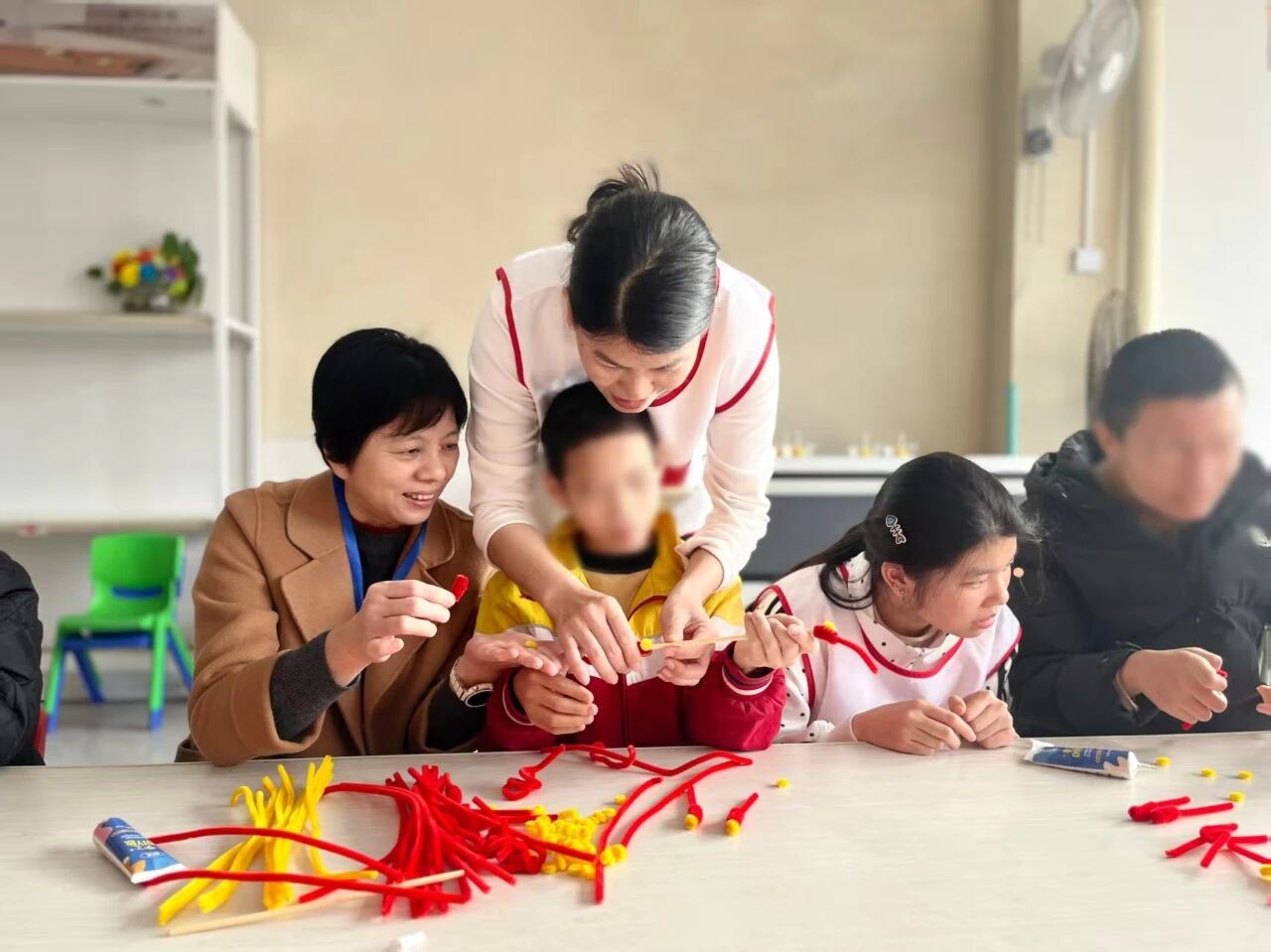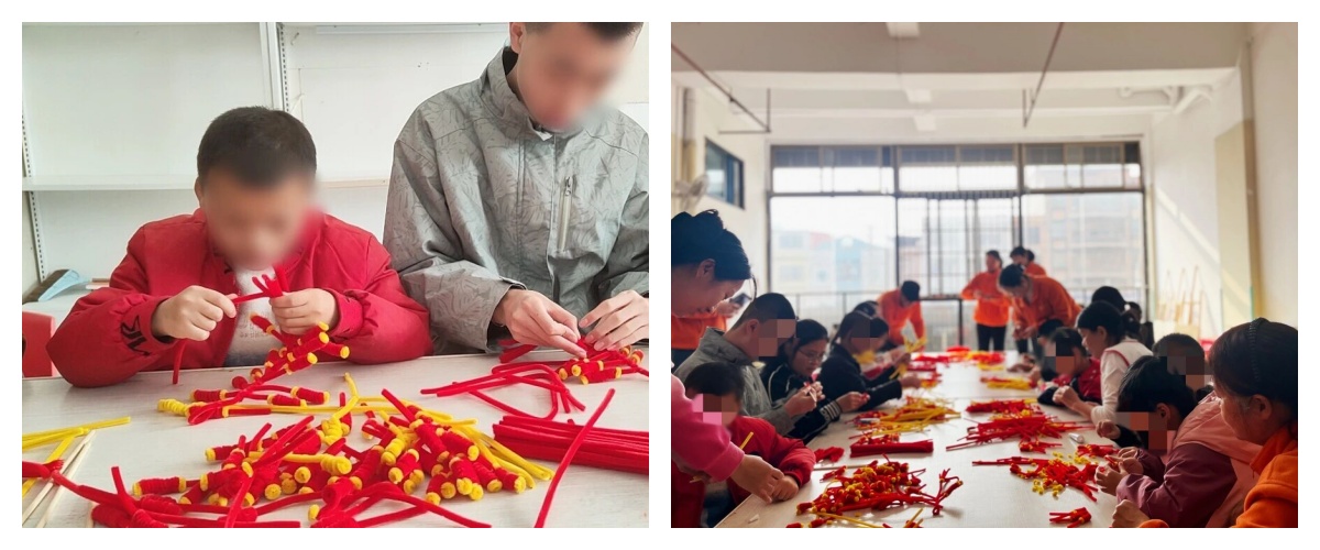 慰问结束后,志愿者们以“星途计划”志愿服务项目为载体,与孩子们共同开展趣味手工融合活动。大家携手制作扭扭棒鞭炮、拓印福字,在温馨互动中帮助孩子们锻炼动手能力、感受节日氛围、提升社会适应能力。现场欢声笑语、年味浓厚,一件件手工作品承载着祝福与希望,让“星星的孩子”在陪伴中感受温暖、收获自信。